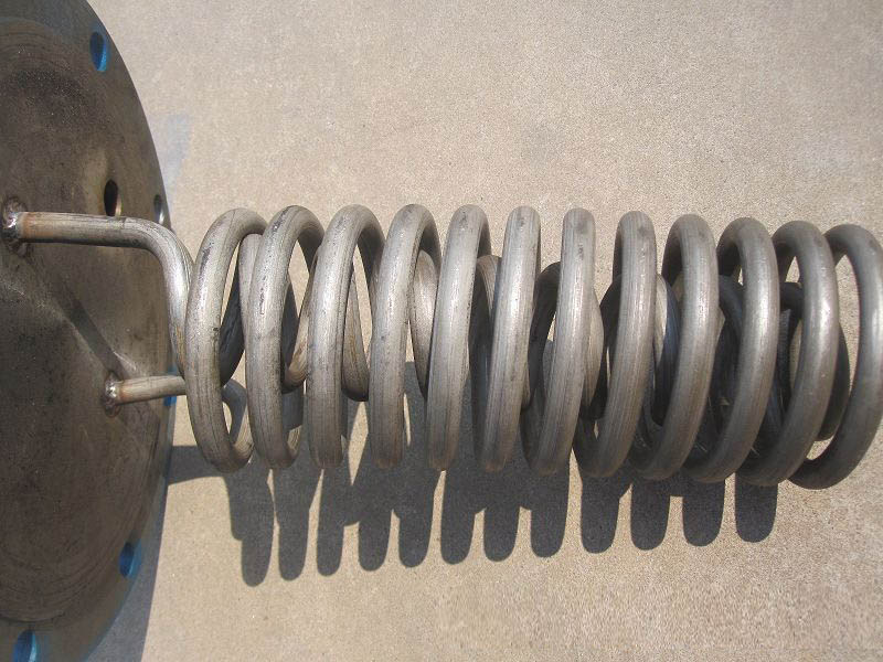2、盤(pán)管為雙盤(pán)管,有兩種規(guī)格:一種是長(zhǎng)六米的不銹鋼管,另一種為12米不銹鋼管(能使樣水冷卻的時(shí)間更長(zhǎng)),盤(pán)管為12*2標(biāo)準(zhǔn)304不銹鋼管。