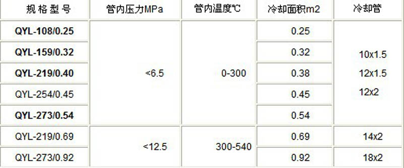 三:取樣冷卻器 選材及優(yōu)點(diǎn)     1、取樣的導(dǎo)管均采用不銹鋼管(1Cr18Ni9Ti),不能用碳鋼管或黃銅管,以免樣品在取樣過(guò)程中被導(dǎo)管中的金屬腐蝕產(chǎn)物污染.     2、我廠取樣冷卻器適用于溫度較高的液體和氣體等介質(zhì)取樣,出廠前冷卻管均經(jīng)38Mpa的5分鐘水壓試驗(yàn), 使用安安全可靠。     3、具有結(jié)構(gòu)緊湊、傳熱效率高、清洗方便、使用壽命長(zhǎng)等優(yōu)點(diǎn)。     4、冷卻器螺旋管可由一組具有所需冷卻面積的連續(xù)盤(pán)管構(gòu)成, 蒸汽消聲器 也可由兩組螺旋管內(nèi)外排列構(gòu)成。四:取樣冷卻器訂貨說(shuō)明    1:冷卻器管程的工作壓力與樣品進(jìn)口溫度。    2:冷卻取樣后達(dá)到的溫度(一般取樣溫度為35度左右)。      3:一般電廠選型常為:QYL-159/0.32、QYL-219/0.40、QYL-273/0.54。    4:是否需組合式。五:安裝及維護(hù)  1、安裝前應(yīng)對(duì)冷卻器進(jìn)行抽芯檢查、清掃,抽芯時(shí)應(yīng)注意保護(hù)密封面,將管束放置在專(zhuān)用的支撐結(jié)構(gòu)上,以避免損傷換熱管。  2、安裝時(shí)應(yīng)在冷卻器的兩端留有足夠的空間來(lái)滿足拆裝、維修的需要?! ?、應(yīng)在不受力的狀態(tài)下連接管線,避免強(qiáng)力裝配?! ?、冷卻器不得在超過(guò)銘牌規(guī)定的條件下運(yùn)行。    5、應(yīng)經(jīng)常對(duì)管、殼程介質(zhì)的溫度及壓降進(jìn)行監(jiān)督、分析冷卻器的泄漏的結(jié)垢情況。