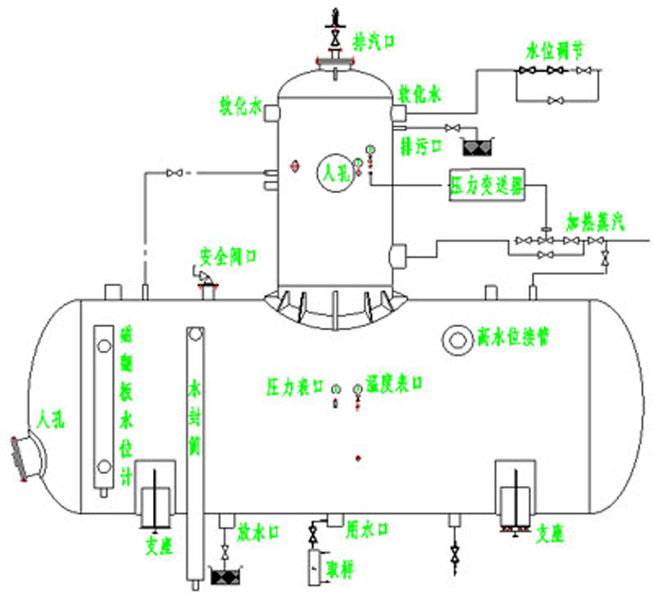 2:除氧器的附件要求(常規(guī)配給:安全閥、水位計(jì)、壓力表、溫度表、水封筒、滾體)。