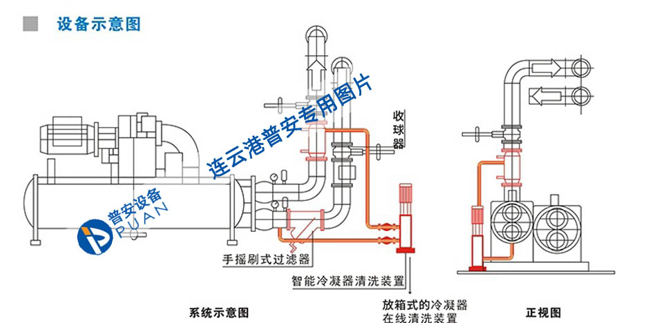 ?發(fā)球器:利用系統(tǒng)自帶水泵加壓,將膠球注入冷卻水管中,發(fā)球器帶有可視窗口,可隨時(shí)觀察球體狀態(tài)