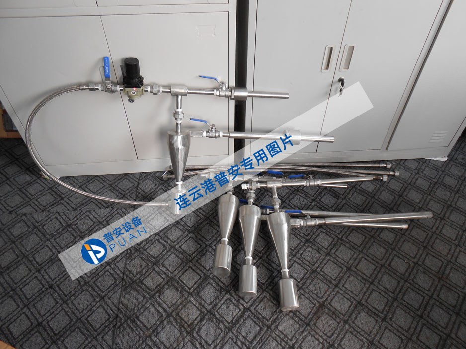 隱臂式固定煤粉取樣裝置是利用負(fù)壓抽吸和旋風(fēng)分離原理將氣粉混合物從煤粉管道中抽吸出并進(jìn)行固氣分離而研制成功的。取樣過程中,取樣管為展開伸入煤粉管道中,所有閥門為開啟狀態(tài),當(dāng)壓縮空氣從出氣管道經(jīng)過射器抽氣器,其射流作用必然導(dǎo)致旋風(fēng)分離器、取樣管、取樣瓶等部件產(chǎn)生負(fù)壓,促使煤粉管道中的氣粉混合物沿取樣管進(jìn)入取樣裝置,氣粉混合物在旋風(fēng)分離器中進(jìn)行固氣分離,分離出的煤粉落入旋風(fēng)分離器下面的取樣瓶中,氣體則被壓縮空氣抽吸從新送如煤粉管道中,整個(gè)操作過程對(duì)工作場(chǎng)所不產(chǎn)生污染。取樣前對(duì)壓縮空氣調(diào)壓閥進(jìn)行調(diào)整,可實(shí)現(xiàn)等速取樣,使取出的煤粉樣品具有代表性。(壓縮空氣壓力一般不超過0.1Mpa)。